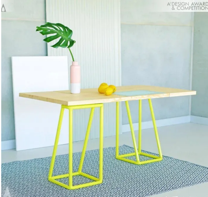 Mubic is a modular table that can be converted from a coffee table to a dining table for 2, 4 or 6 people without disassembling it, just by rotating its legs.